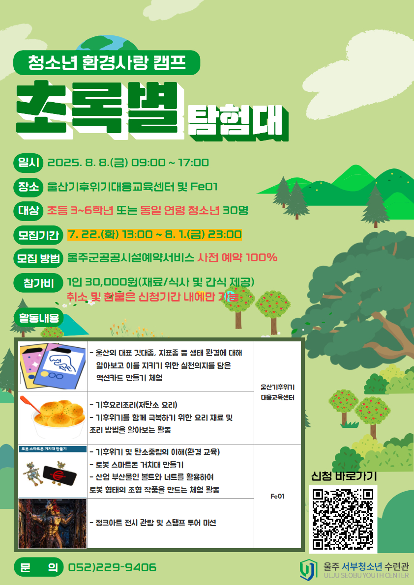 [울주서부청소년수련관] 청소년 환경사랑캠프 "초록별 탐험대" 참가자 모집 안내