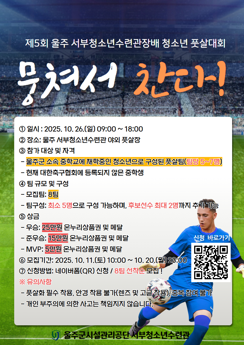 [울주 서부청소년수련관] 제5회 울주 서부청소년수련관장배 청소년 풋살대회 "뭉쳐서 찬다!" 참가팀 모집 안내
